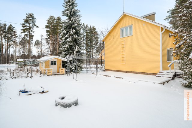 Golf kenttien vierestä, hyvin pidetty kaksi kerroksinen omakotitalo omalla tontilla. Asuinrakennuksen lisäksi erillinen talousrakennus, josta löytyy autotalli sekä kylmävarasto. Säilytystilaa on siis reilusti. Asuinrakennuksen lämmitys tapahtuu sähköllä. Lämmönjakotapana sähköpatterit sekä lattialämmitys. Lisäksi lämmitystä tukee ilmalämpöpumppu, joka toisaalta myös takaa mukavaa viilennystä kesähelteillä. Sähkönkulutus ollut n. 15 000kWh/v kuuden hengen taloudella.