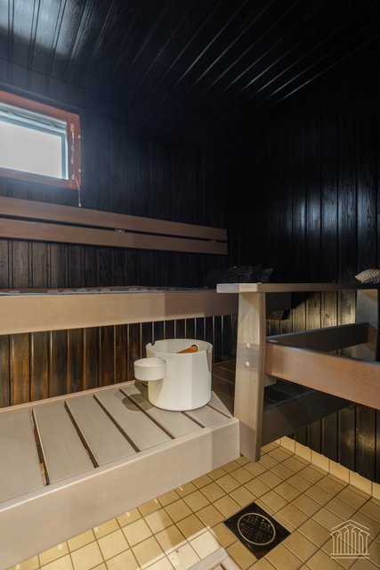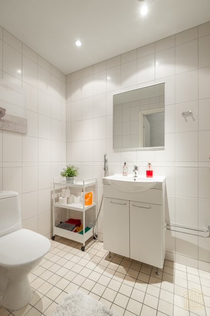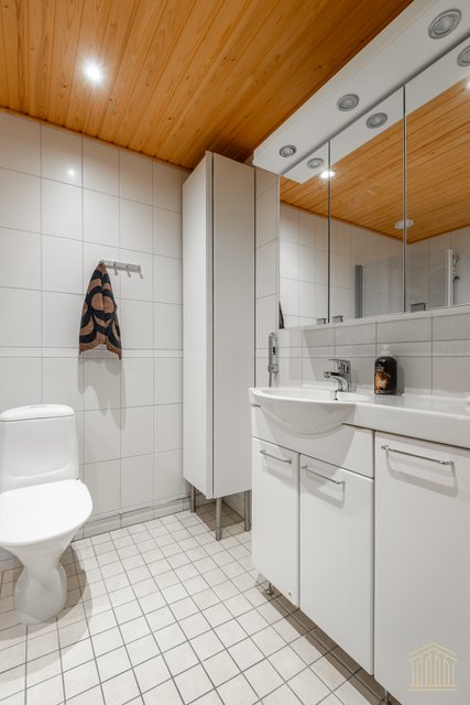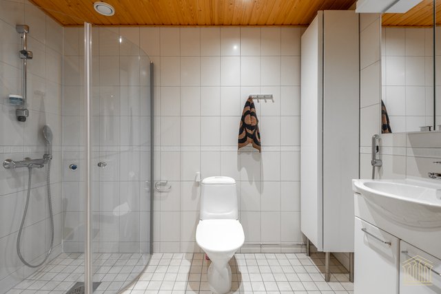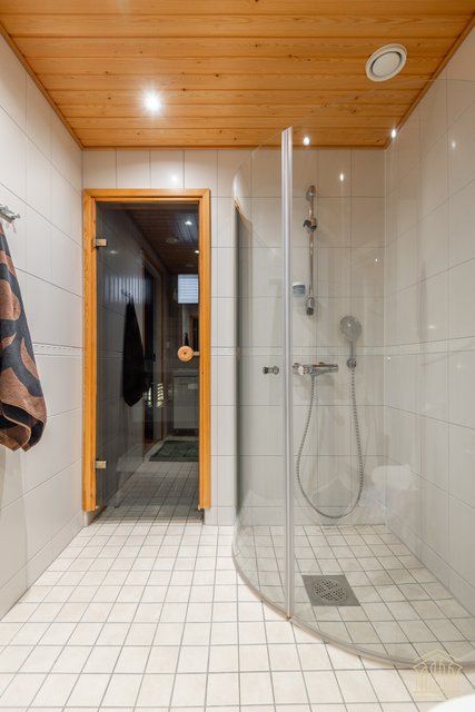 - Pöytätaso, pesuallas, pyykkikaapit, tila pesutornille, lattialämmitys, ja pesukoneliitäntä