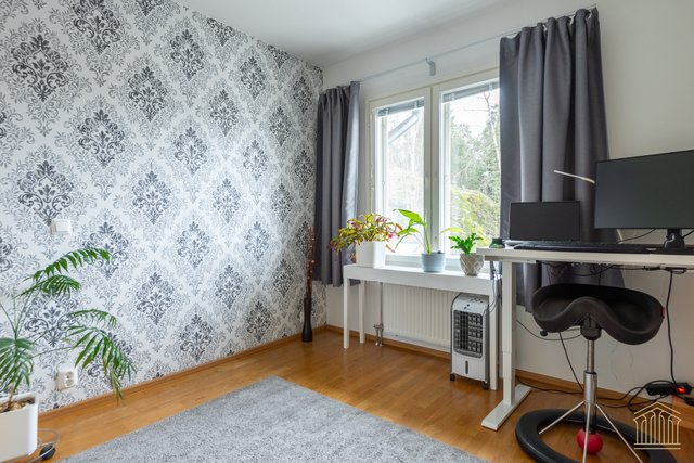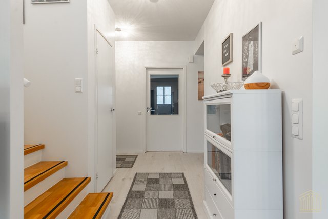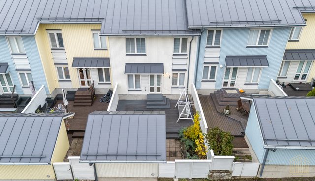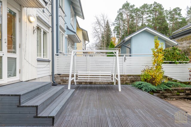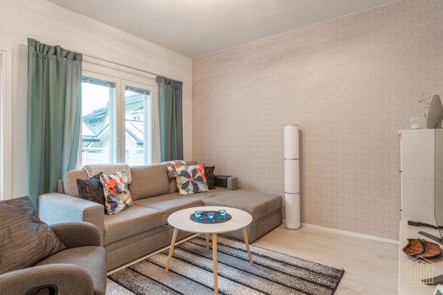 Asunnossa on olohuone ja kolme makuuhuonetta, toimiva keittiö, oma sauna, sekä erillinen wc alakerrassa. Kodinhoitohuone helpottaa arkea, vaatehuone ja toimiva kylpyhuone wc:llä. Olohuoneesta on käynti etelään päin avautuvalle aurinkoiselle terassille, jossa on mukava nauttia kesäpäivistä ja grillailla perheen tai ystävien kanssa.
