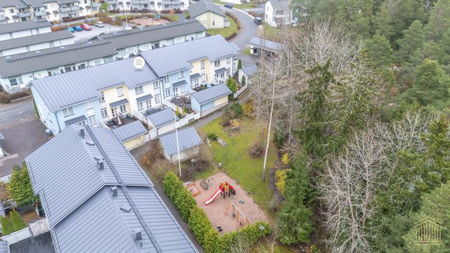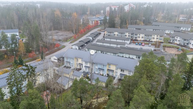 Taloyhtiö rajautuu mukavasti metsäisen alueen laidalle ja on myös siksi erittäin rauhallinen ja vehreää ympäristöä onkin miellyttävästi tarjolla heti olohuoneesta ja takaterassilta katsottaessa.