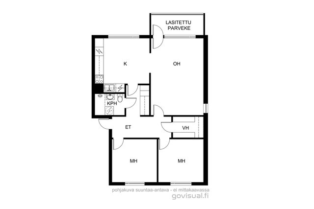 - Ei tarkistusmitattu. Pinta-alat saattavat tämän ikäisissä kohteissa (yhtiö rekisteröity ennen 01.01.1992) poiketa olennaisestikin asuinrakennusten nykyisten mittaustapojen ja standardien (SFS 5139) mukaan laskettavasta asuintilojen pinta-alasta. Pinta-ala voi siis olla edellä mainittua pienempi tai suurempi.