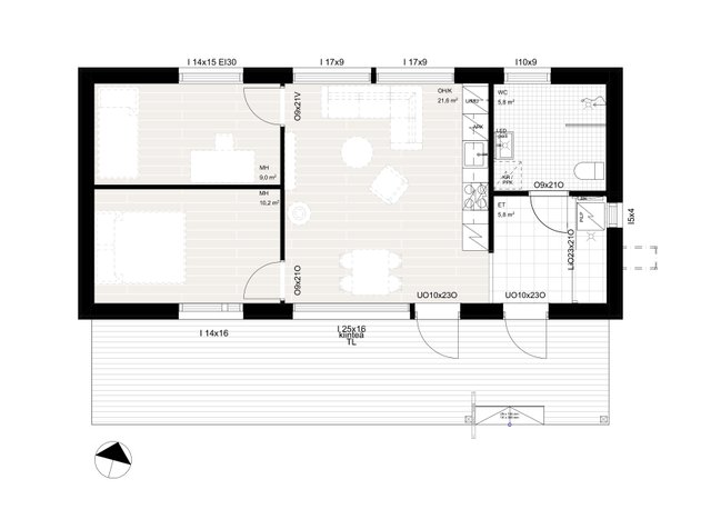 - Häkkivarastossa tila 2,7 m2/asunto. Terassi avautuu etelän suuntaisesti. Jokaisella asunnolla on oma piha, sen lisäksi yhteispihoja, jaettu parkkialue ja jaettu varasto. Alueelle on mahdollista tehdä yhteinen sauna ja autokatos.