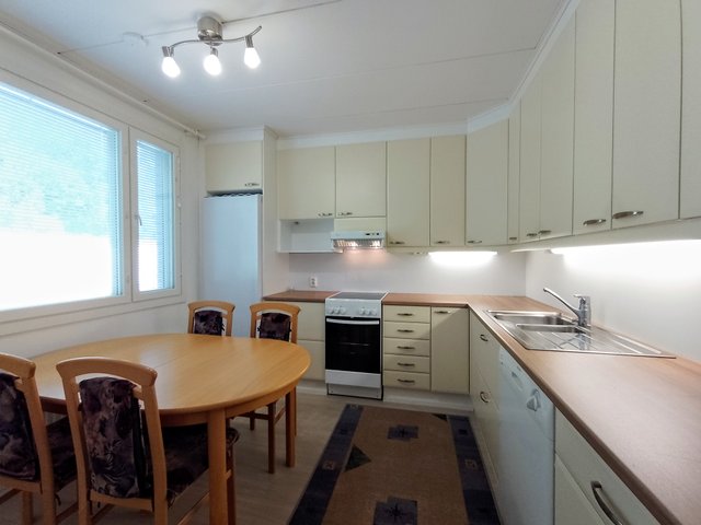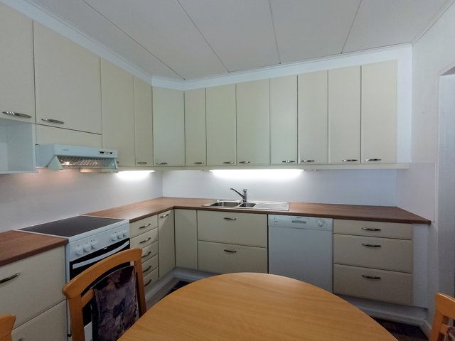 - Jääkaappi, liesi, astianpesukone, ja liesituuletin (omistaja asentanut itse, ei tietoa onko asianmukainen)