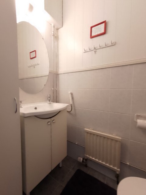 - Pesuallas, suihku, ja kaappi