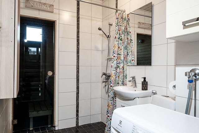 - Lattialämmitys, suihku, pesukoneliitäntä, wc-istuin, peili, ja allaskaappi