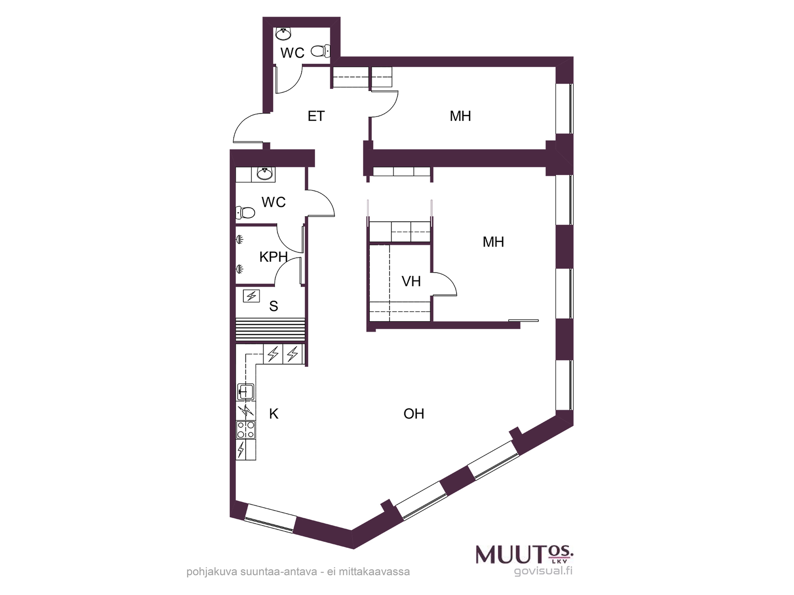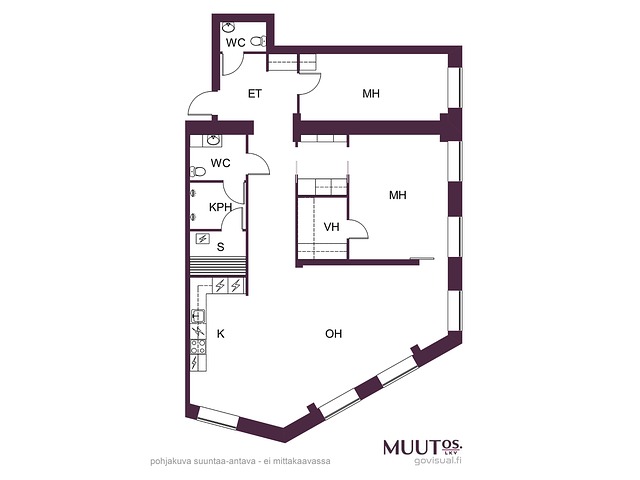 - Huoneiston todellinen pinta-ala voi olla yhtiöjärjestyksessä, isännöitsijäntodistuksessa ja esitteessä mainittua pienempi tai suurempi. Hinta ei ole pinta-alaperusteinen. Yhtiöjärjestyksen mukainen huoneistoselitelmä: 3h+k+s