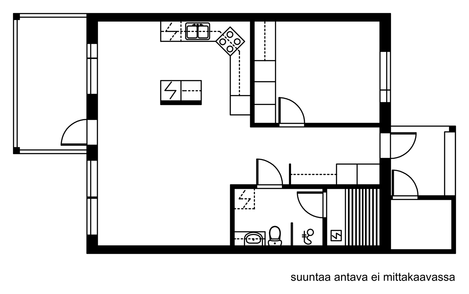- Lisätietoja sisältyvistä varusteista: huoneistokohtainen ilmanvaihtokone, kaapistot, kiinteät valaisimet, naulakko, sälekaihtimet/rullaverhot, verhotangot