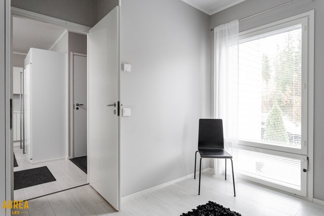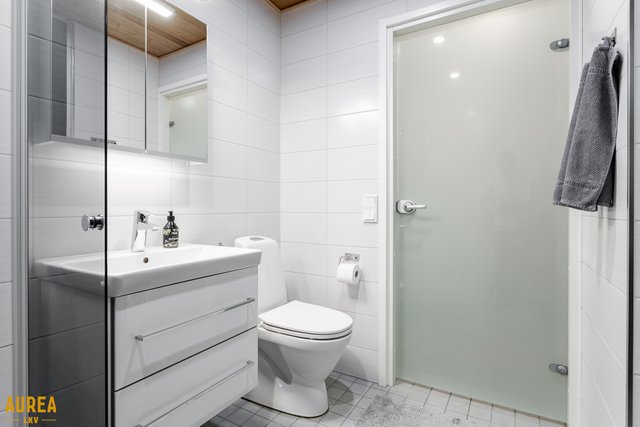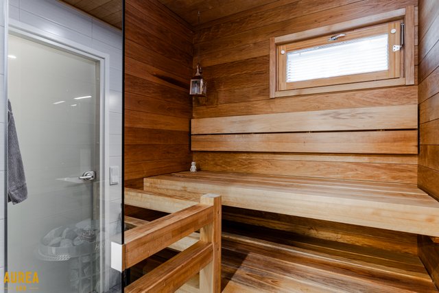 Kodin kaksi makuuhuonetta ovat tilavia ja niissä on hyvät säilytysratkaisut. Saunaosasto hurmaa lämpökäsitellyillä lauteilla ja paneeleilla, ja kodinhoitohuoneessa on erinomaiset tilat arjen pyörittämiseen. Kaksi wc:tä tuovat lisää mukavuutta – toinen erillisenä, toinen kylpyhuoneen yhteydessä.