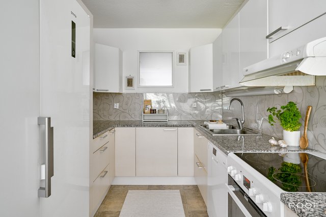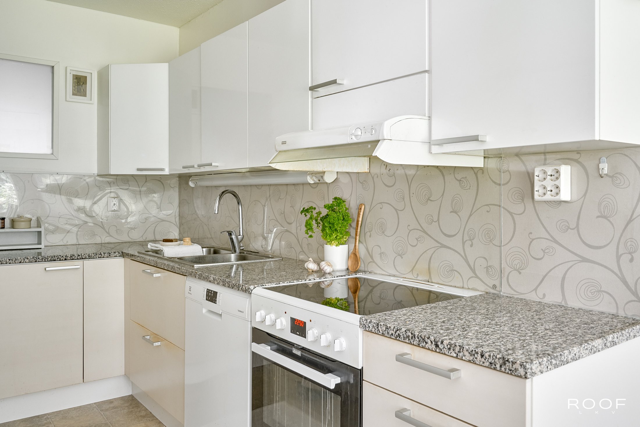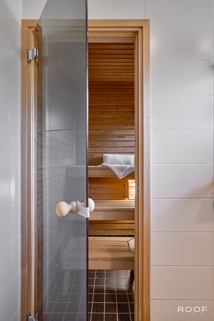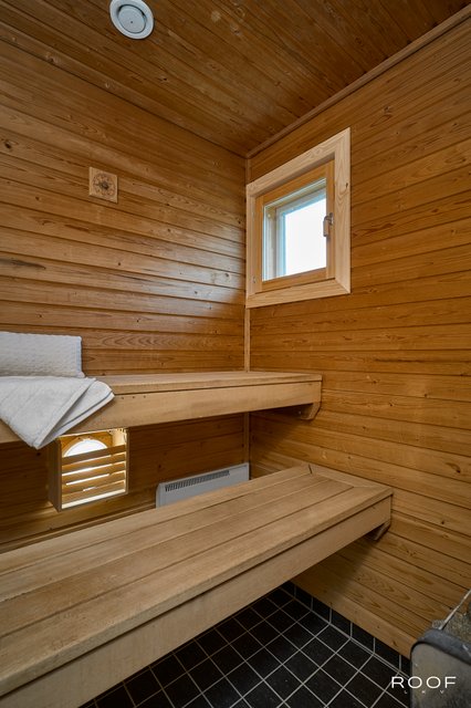 Vuonna 2024 uusitut kylpyhuone ja sauna tuovat modernia ilmettä ja mukavuutta. Kodinhoitotilat ovat tilavat ja käytännölliset, ja vaatehuone tarjoaa runsaasti säilytystilaa. Olohuoneesta avautuu käynti suojaisalle terassille. Asunnolle kuuluu myös oma varasto sekä autokatospaikka.