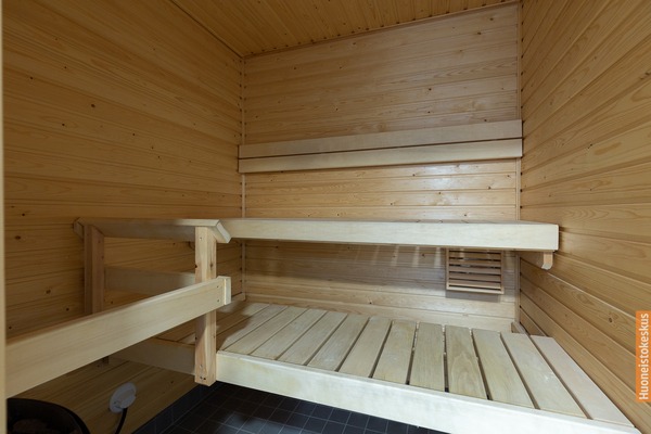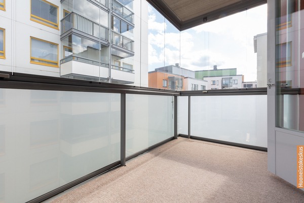 Tässä 1. kerroksen asunnossa on todella hyvä pohjaratkaisu, neliöt ovat hyvin käytetty ja huoneet kaikki tilavia, ja olohuone-keittiötila on avara ja valoisa. Säilytystilaa on mukavasti, löytyy vaatehuone ja useita kaappeja. Omassa saunassa voi saunoa oman aikataulun mukaan ja lasitettu parveke on mukava olohuoneen jatke.