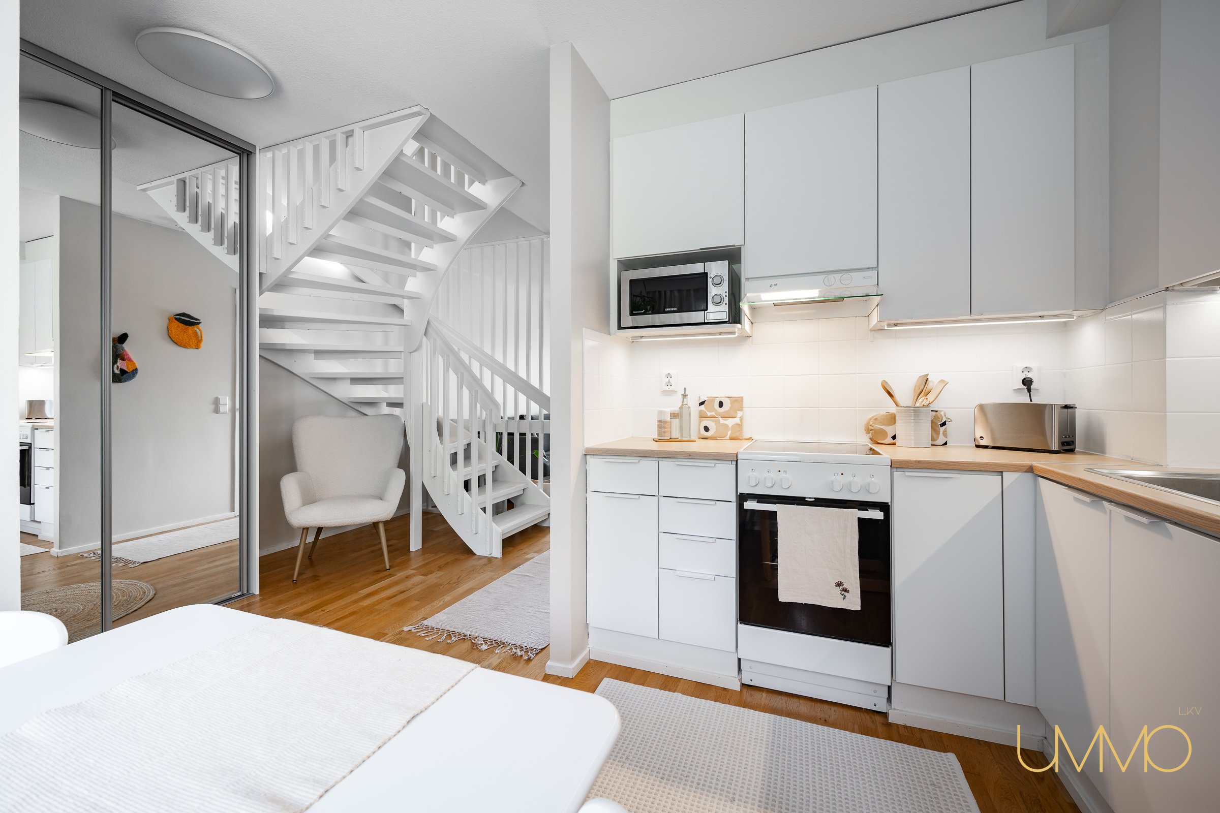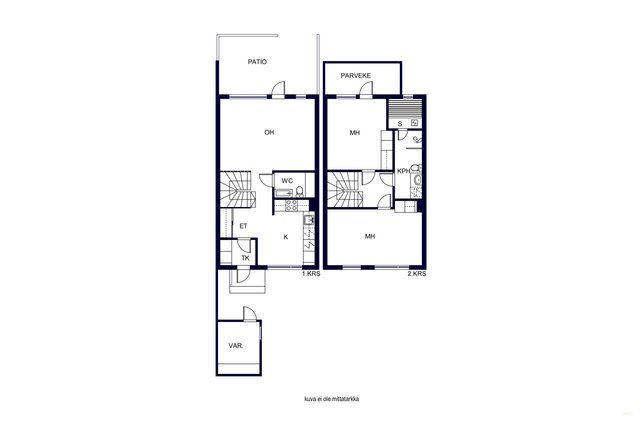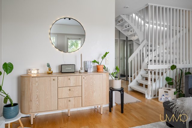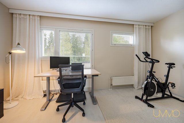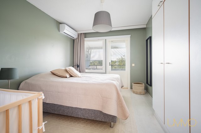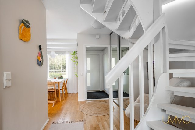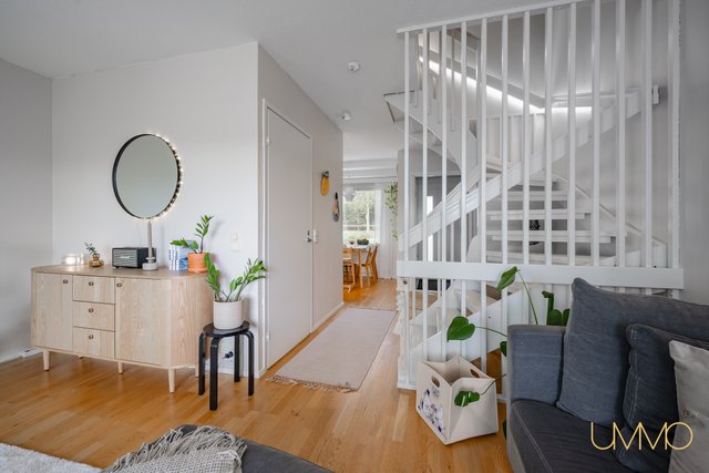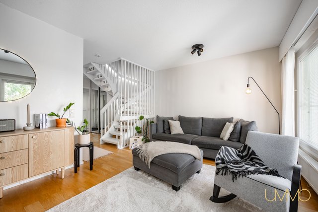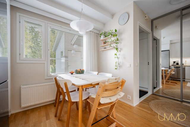Tämä siisti koti tarjoaa toimivat tilat kahdessa kerroksessa. Alakerrasta löydät päivitetyn keittiön, remontoidun erillisen wc:n sekä tilavan olohuoneen, josta on kulku omalle takapihalle. Yläkerrassa sijaitsevat kaksi makuuhuonetta – toisesta käynti omalle parvekkeelle. Lisäksi yläkerrasta löytyvät kylpyhuone, sauna ja toinen wc-istuin. Asumismukavuutta lisää vuonna 2023 asennettu viilentävä ilmalämpöpumppu.
