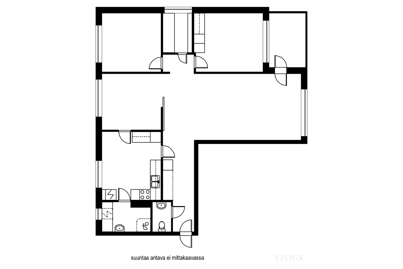 - Läpitalon päätyhuoneisto, josta näkymät useaan suuntaan.