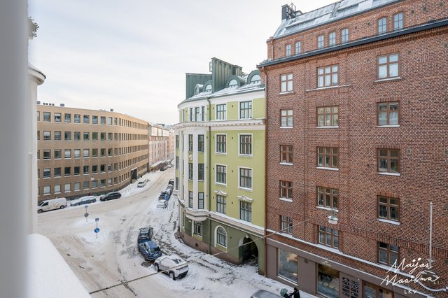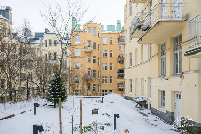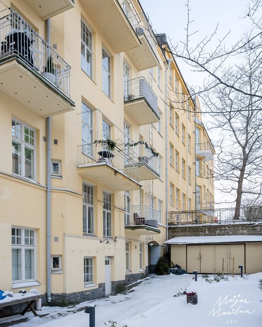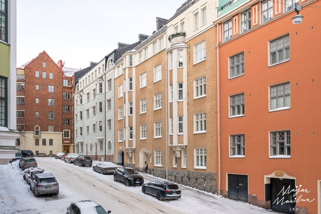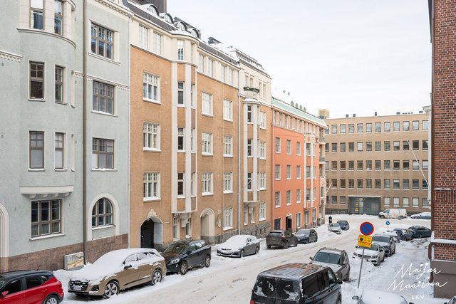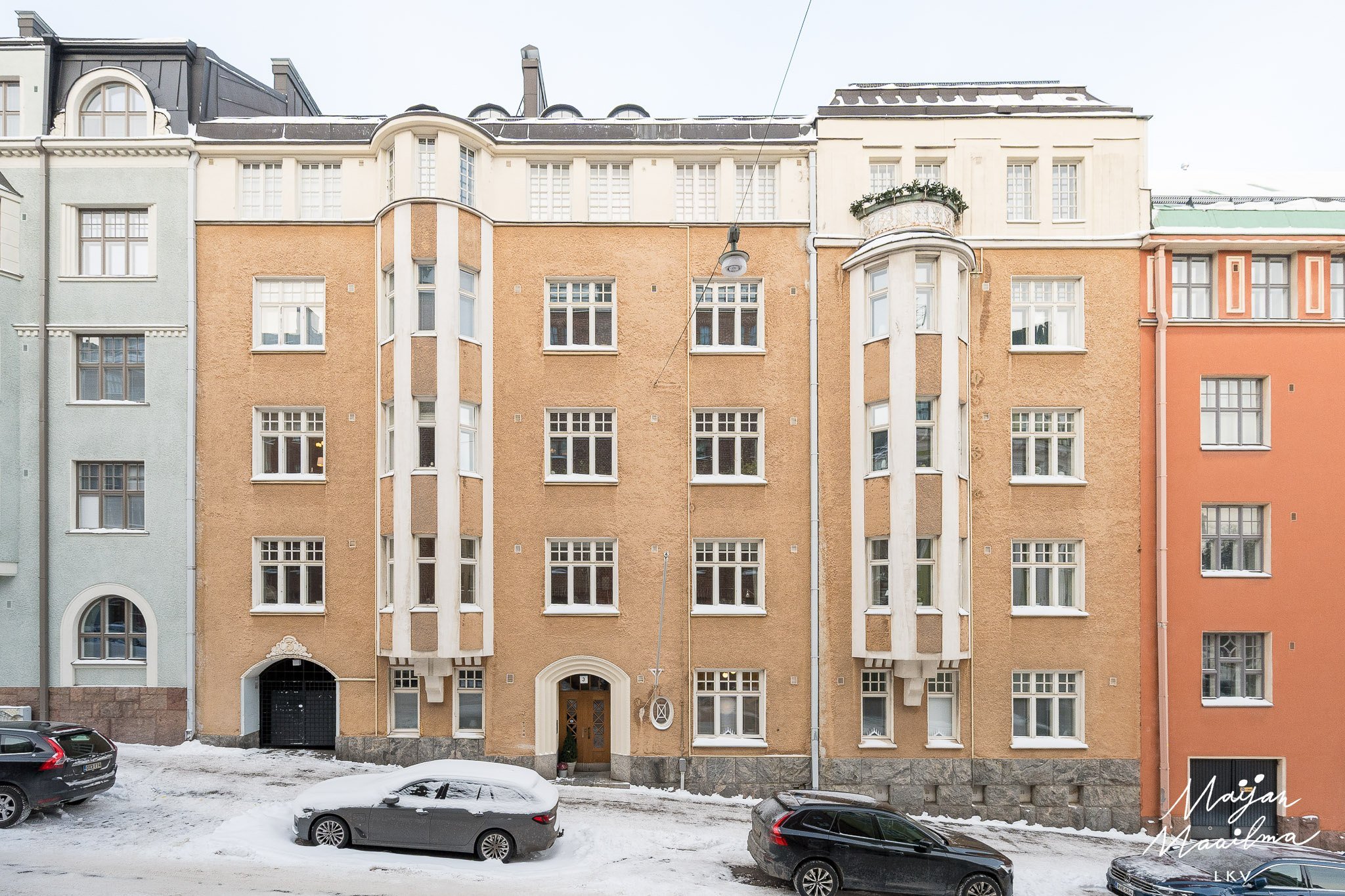 Asunto sijaitsee vuonna 1914 valmistuneessa Etu-Töölön ehkä kauneimmassa talossa ja samaa yli 110 vuotta vanhaa arvokkuutta huokuvat taloyhtiön porrashuone, asunnon syvät ikkunalaudat, vanhat puiset lasiovet ja kattorosetit sekä tämän aikakauden asunnoille tyypillinen hulppea huonekorkeus. Asunnon ehdottomia valttikortteja ovat muun muassa loistava sijainti avaran risteyksen kulmassa, mutta rauhallisen katuosuuden varrella, alkuperäinen kaakeliuuni, upeat tammiset ruutuparkettilattiat, parveke, sauna ja loistava pohja. Ikkunanäkymät ovat upeat ja valo tulvii asuntoon. Lisämukavuutta tuo taloyhtiön juuri remontoitu viihtyisä takapiha. Tämä asunto on poikkeuksellisen kaunis ja tunnelmallinen! Asunto on vuokrattuna, joten huoneistosta ei julkaista sisäkuvia. Soittele ja kysy lisää!
