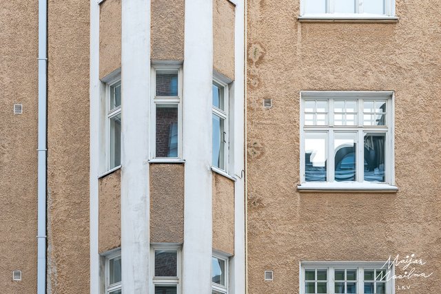 - Parkettilattia, maalatut seinät. Kaakeliuuni. Erkkeri-ikkuna.