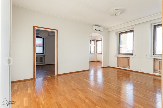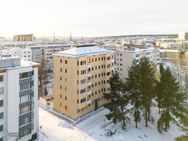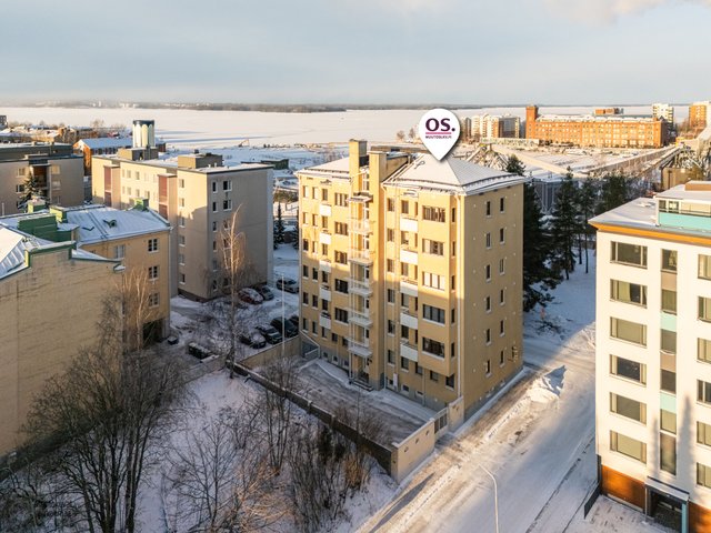 Tämän asunnon tehoneliöt ovat todellakin käytetty hyväksi. Asunto sijaitsee ylimmässä, kuudennessa kerroksessa, ja tarjoaa rauhalliset näkymät ja puitteet keskusta-asumiseen.