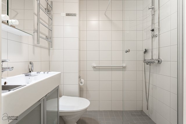 - Suihku, wc-istuin, ja pesukoneliitäntä