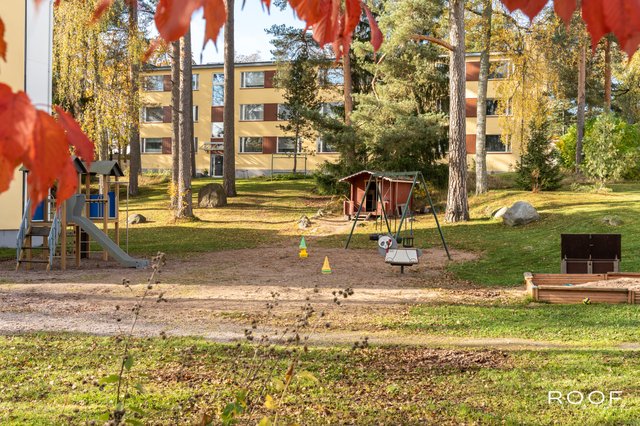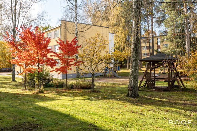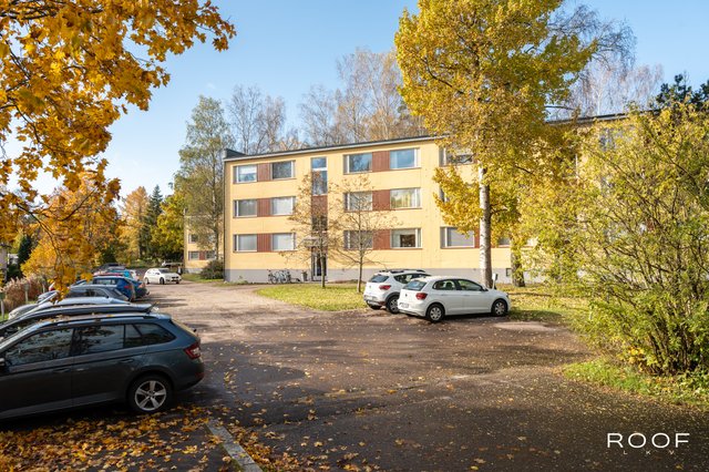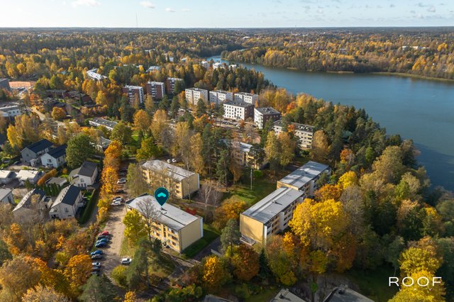 Tämä viihtyisä kaksio sijaitsee lähellä Lippajärveä rauhallisella ja vehreällä alueella. Taloyhtiöllä on käyttöoikeus kaupungin omistamaan rantasaunaan ja myös Lippajärven uimaranta on lähellä. Taloyhtiön piha on erittäin kaunis ja talot on sijoiteltu 60-luvun tyyliin niin, että tilaa ja avaruutta riittää. Talon vierestä pääsee suoraan poikkeuksellisen hienoille ulkoilureiteille ja Viherkallion koirapuisto sijaitsee noin kilometrin kävelymatkan päässä.