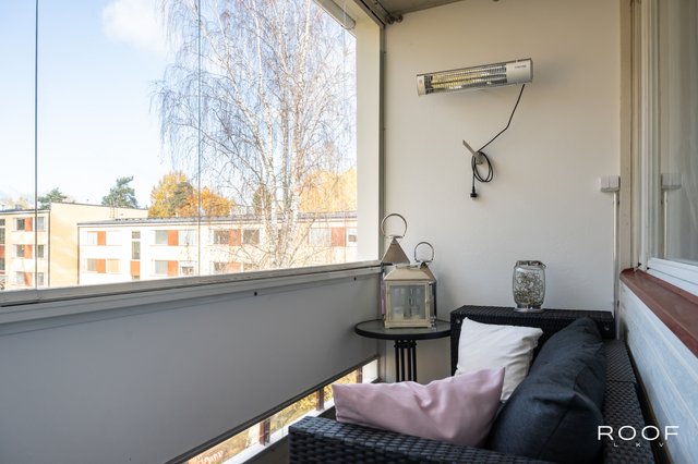 Asunnon kolmas kerros tarjoaa kauniit ja avarat näkymät kahteen suuntaan ja lasitettu länsiparveke tuo mukavasti lisätilaa ja valoa. Asunto on hyväkuntoinen ja sen pohjaratkaisu on toimiva. Huoneisto on remontoitu viime vuonna, jolloin mm. keittiö ja lattiat uusittiin samoin kuin huoneiston sähköt. Kylpyhuone on uusittu vuonna 2020 tehdyn perinteisen putkiremontin yhteydessä.