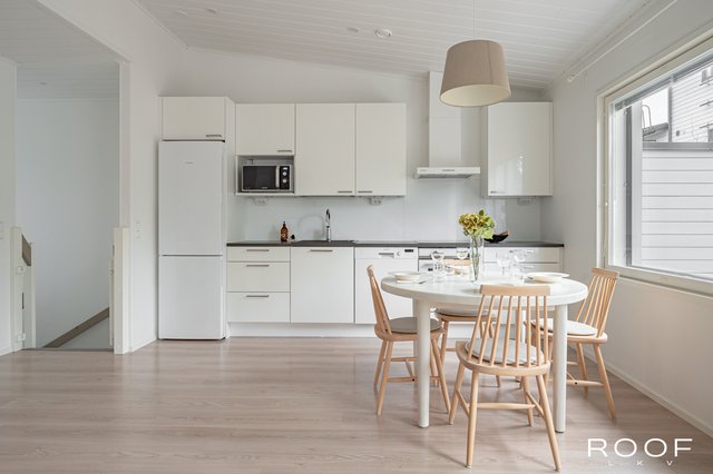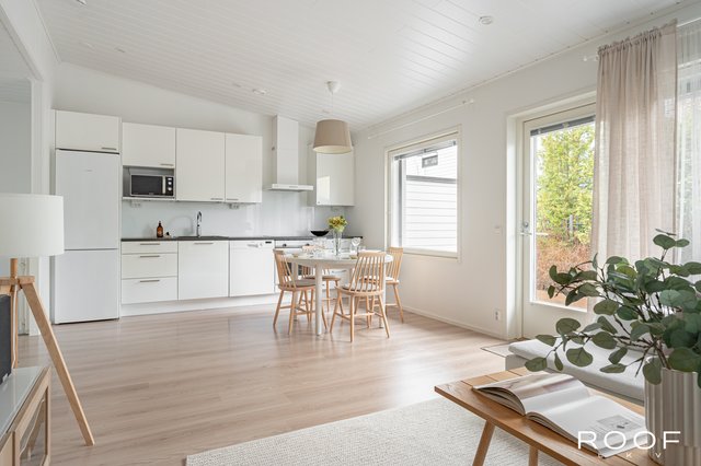 Tämä vuonna 2020 valmistunut paritalokoti tarjoaa harkittua, toimivaa ja huolettoman modernia asumista. Avara olohuone–keittiö -kokonaisuus muodostaa kodin sydämen, jossa arki ja yhdessäolo nivoutuvat luontevasti yhteen. Olohuoneesta on käynti omalle terassille ja takapihalle. Kaksikerroksisessa kodissa on kolme makuuhuonetta, jotka tarjoavat joustavasti tilaa perheelle, työhuoneelle tai vieraille. Säilytystilat on suunniteltu käytännöllisesti, ja arkea sujuvoittavat kaksi kylpyhuonetta, oma sauna sekä erillinen kodinhoitohuone. Kokonaisuus on siistikuntoinen, selkeä ja heti käyttöön valmis.