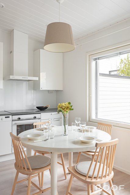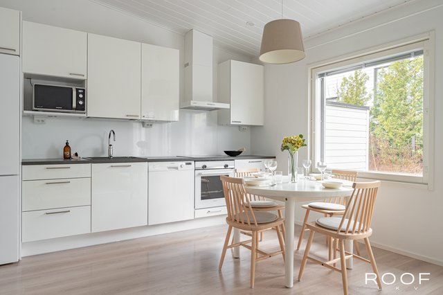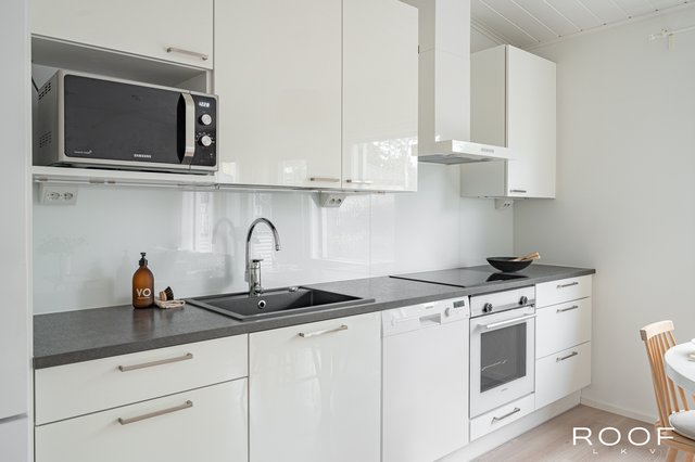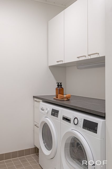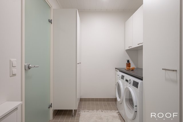 - Pesukoneliitäntä, lattialämmitys, pöytätaso, ja kaapistot