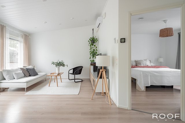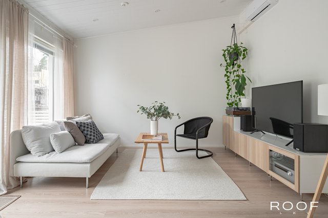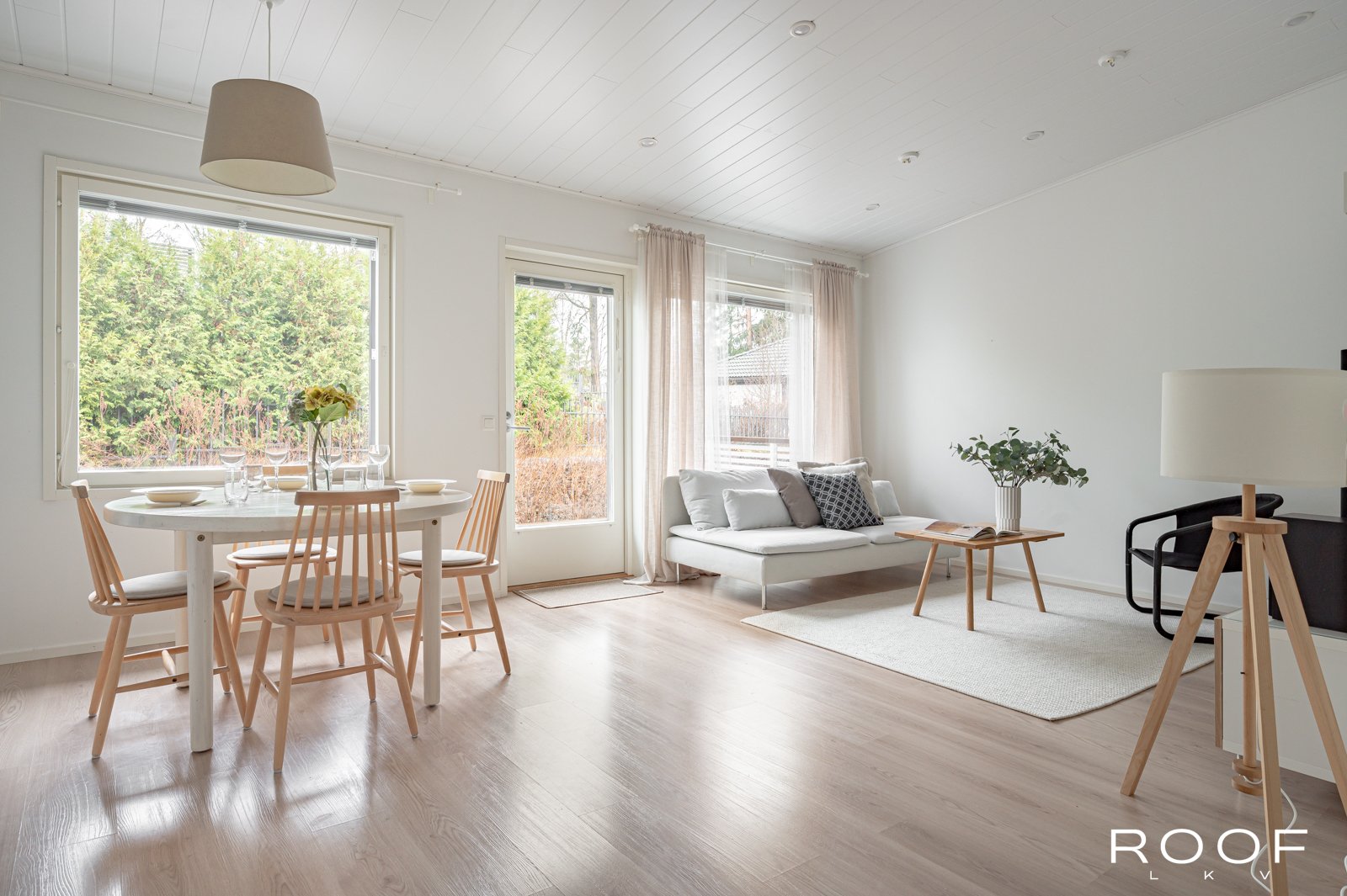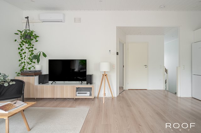 Hallinnanjakosopimuksella jaettu kiinteistö tarjoaa omakotitalomaista asumista arvostetulla pientaloalueella. Nykyaikaiset tekniset ratkaisut, kuten poistoilmalämpöpumppu vesikiertoisella lattialämmityksellä, tukevat miellyttävää ja energiatehokasta arkea.