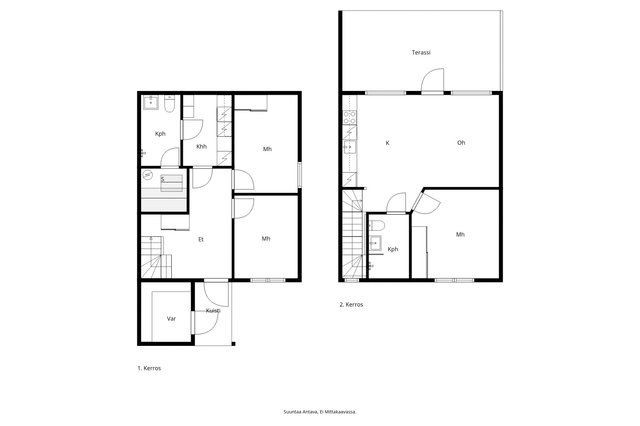 - Yläkerran makuuhuoneessa ja toisessa alakerran makuuhuoneista vaatekaapistot.