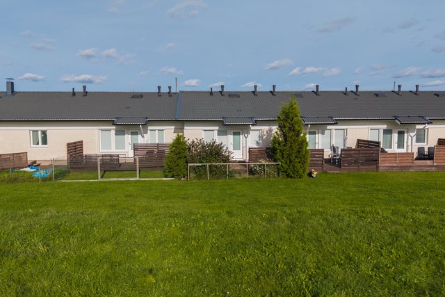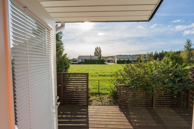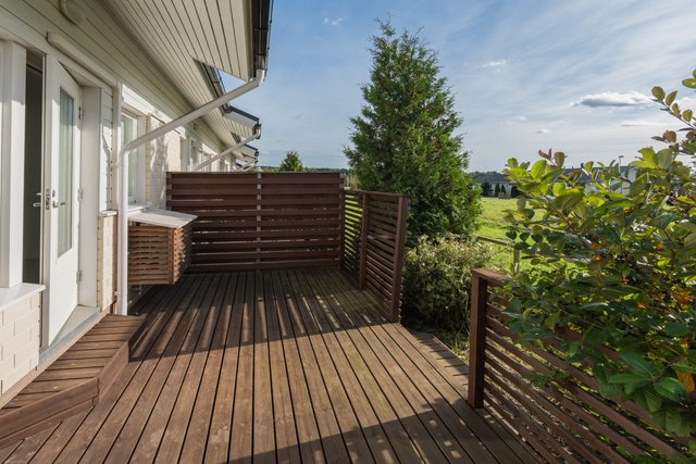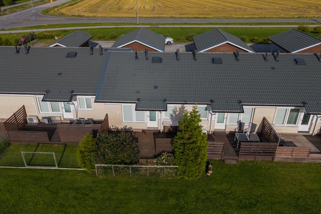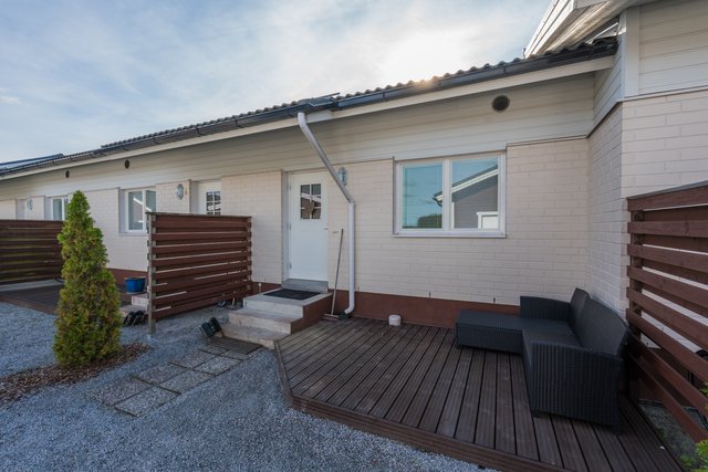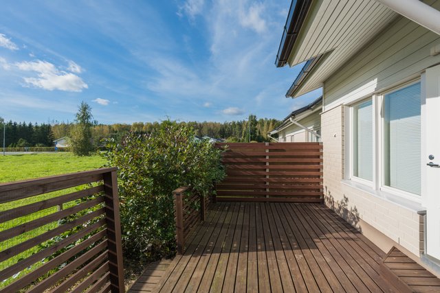 - Lattiat laminaattia tai laattaa. Seinät maalattu tai laattaa. Katto valkoinen maalattu tai puupaneeli (pesuhuone ja sauna). Avoterassit etu- ja takapihalla.