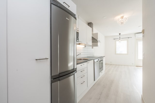 - Jääkaappipakastin, uuni, liesi, liesituuletin, ja astianpesukone