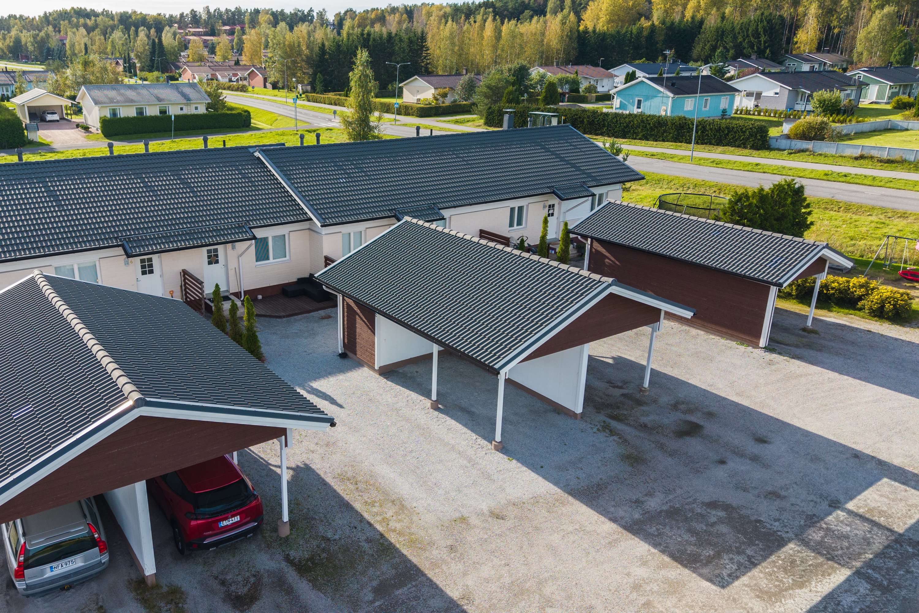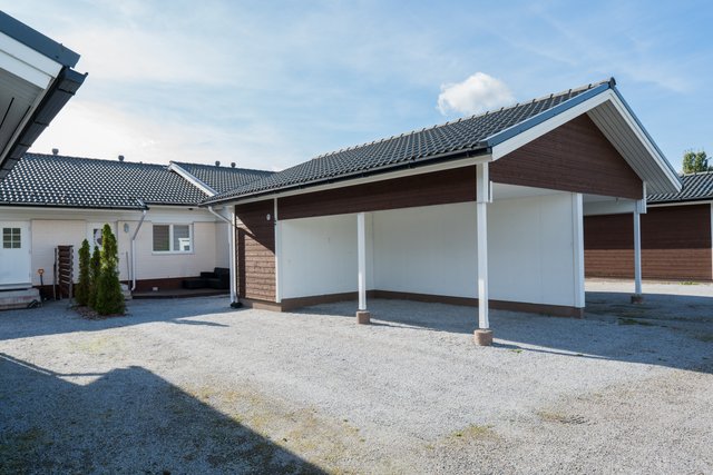 - Lisäksi autokatos 16 m2 sekä varasto 5 m2