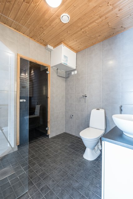 - WC-istuin, suihku, lattialämmitys, bidee-suihku, peilikaappi, allaskaappi, pesukoneliitäntä, ja suihkuseinä