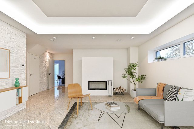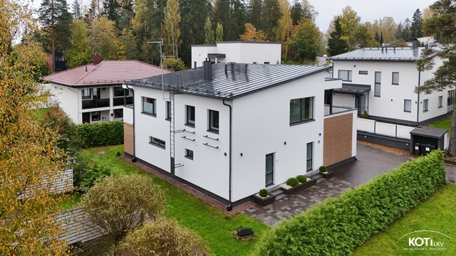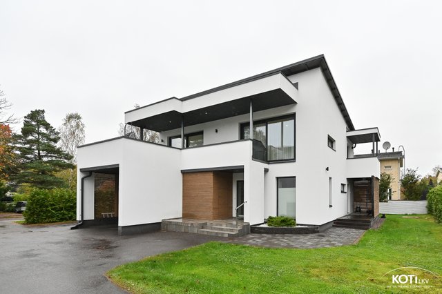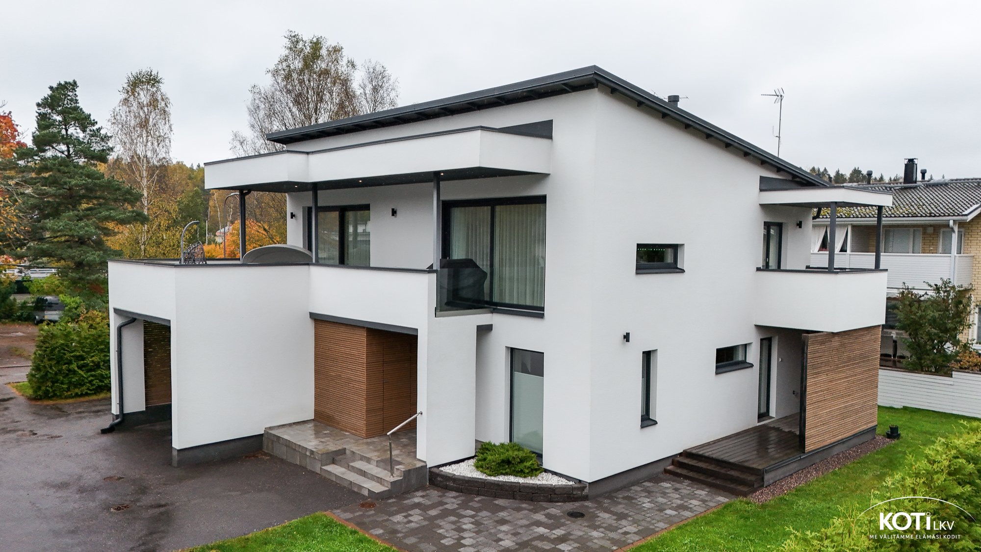 Vuonna 2018 valmistunut vaalea, moderni kivitalo hurmaa selkeällä arkkitehtuurillaan, käytännöllisillä ratkaisuillaan ja harmonisella tunnelmallaan. Pulpettikattoinen, kahteen tasoon rakennettu koti tarjoaa tilaa ja mukavuutta isommallekin perheelle tai etätyötä tekeville.