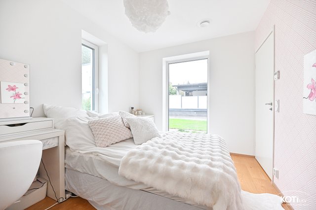 - Yläkerrassa: kolme makuuhuonetta Sisääntulokerroksessa: 1 makuuhuone sekä tilava huone / työhuone, josta käynti ulos.