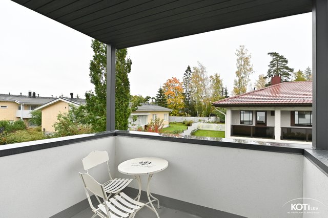 - Sisääntulo asfaltoitu. Helppohoitoinen nurmikkopiha, jossa kivetyksiä ja istutuslaatikoita. Autokatoksen yläpuolella tilava etelään avautuva terassi.