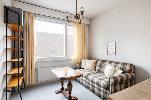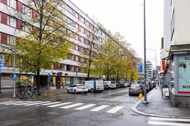 Asunto on hissillisen talon neljännessä kerroksessa ja sijainti ei tästä paljoa parane. Kaikki keskustan kattavat palvelut ovat kävelyetäisyydellä ja liikenneyhteydet ovat erinomaiset. Keskeisestä sijainnista huolimatta tässä kodissa on kivan yksityinen tunnelma: makuuhuoneista avautuu rauhalliset näkymät sisäpihan puolelle – ilman suoraa näkymää naapurin ikkunoihin. Huoneiston pohjaratkaisu on mainio, mutta pinnat kaipaavat kauttaaltaan ehostusta. Kylpyhuone on remontoitu vuonna 2013 linjasaneerauksen yhteydessä, joten teknistä käyttöikää on vielä reilusti jäljellä.