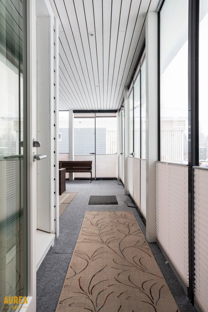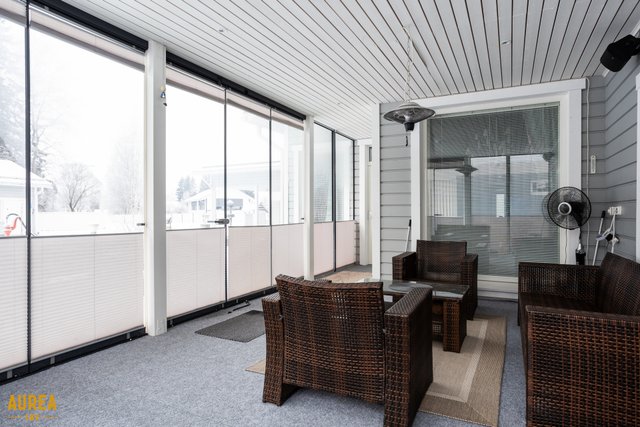 - Tilava lasitettu terassi tarjoaa viihtyisän lisätilan ja pidentää ulkona oleskelun kautta merkittävästi keväästä syksyyn.