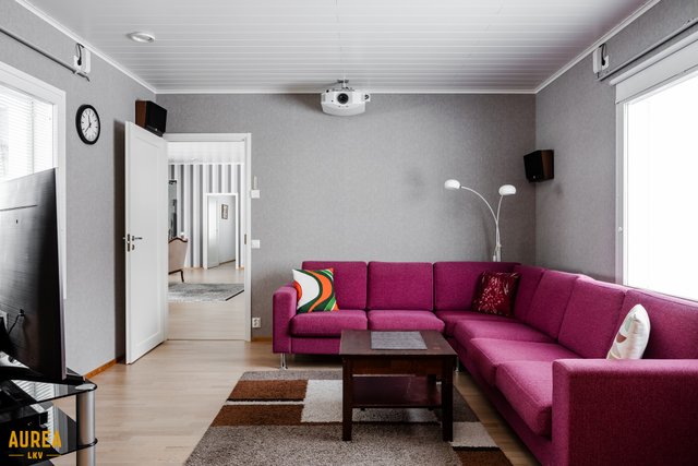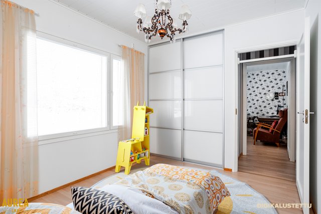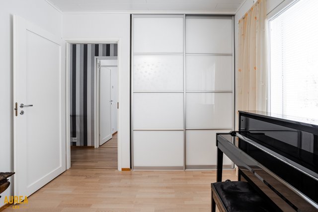 - Kodissa on kolme tilavaa makuuhuonetta, joissa on hyvin säilytystilaa kiinteiden kaappien ansiosta. Yhden makuuhuoneen yhteydessä on käytännöllinen vaatehuone. Talon neljäs huone on 21,9m2, joka taipuu moneen käyttöön mm. kotiteatteriksi tai vaikka hulppeaksi makuuhuoneeksi.