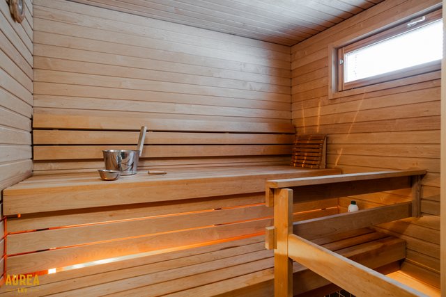 - Ikkunallinen sauna tuo luonnonvaloa ja lisää viihtyisyyttä saunomiseen.