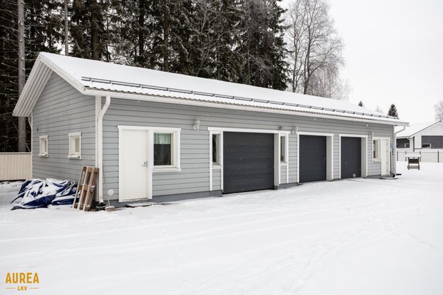 - Poikkeuksellisen suuri, 126 m²:n autotalli tarjoaa erinomaiset säilytys- ja harrastetilat monenlaiselle kalustolle ja ”vehkeille”. Autotallin päädyssä 22,9m2 lämmin huone / varastotila.