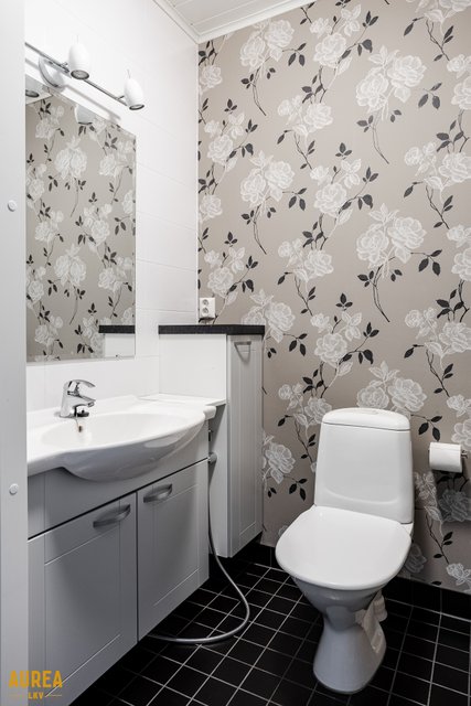- WC-istuin, suihku, bidee-suihku, peilikaappi, pesuallas, allaskaappi, suihkukaappi, ja lattialämmitys