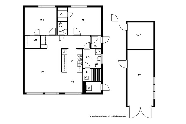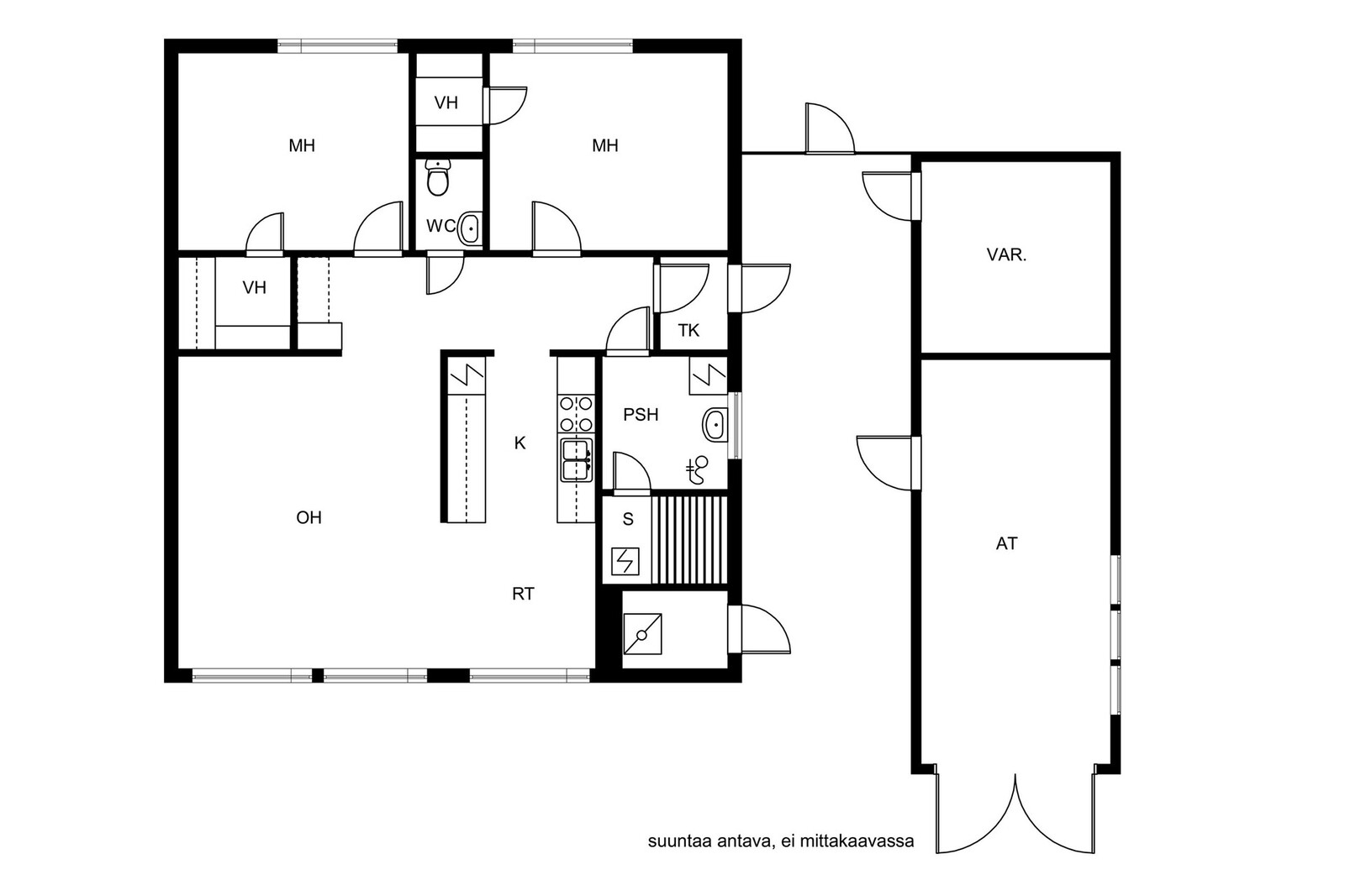 - Pinta-alatiedot on saatu rakennuspiirustuksista, eikä niitä ole tarkistusmitattu, joten ne saattavat poiketa olennaisestikin nykymääräysten mukaan mitattavista pinta-aloista.
