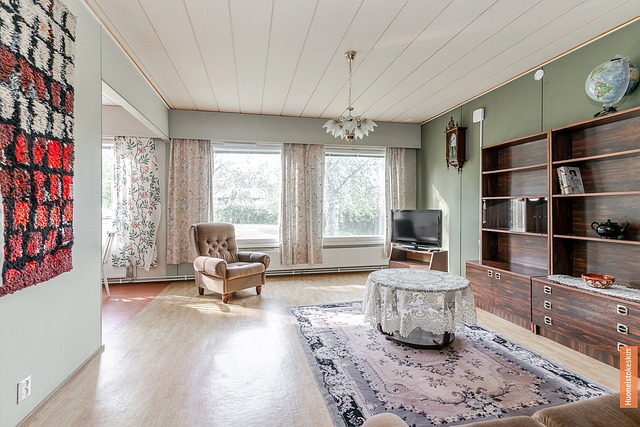 Ruskon keskustan tuntumassa sijaitseva vuonna 1974 valmistunut omakotitalo viihtyisällä asuinalueella.