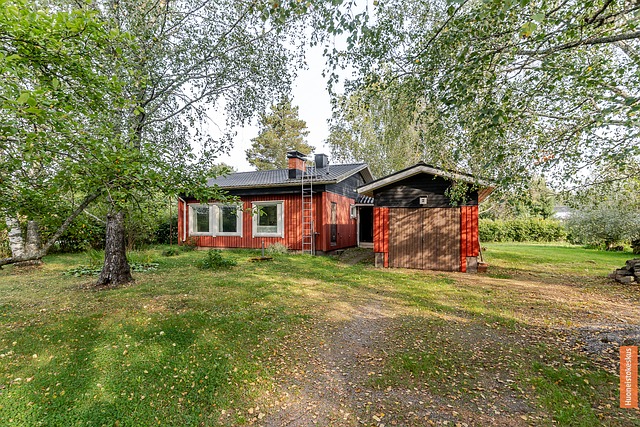 Vehreässä pihapiirissä on autotalli, minkä yhteydessä on varastotila. Lisäksi pihassa on pieni autokatosrakennus.