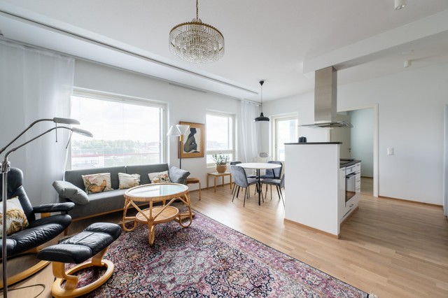 - Asuinpinta-alaa 76 m2 + tilava lasitettu parveke 5 m2 tuo runsaasti lisää käyttöalaa entisestään tilavaan asuntoon.