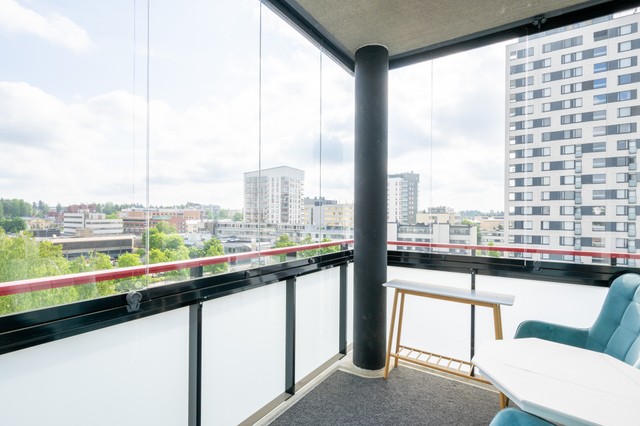 Asunto sijaitsee korkealla, 7. kerros tarjoaa upeat näkymät kaupungin ylle.