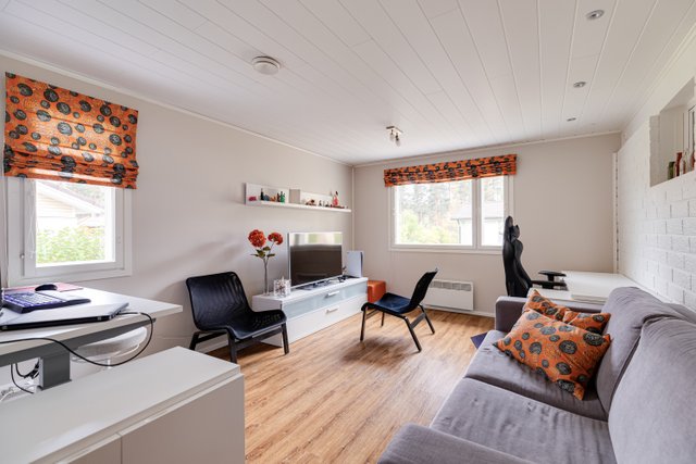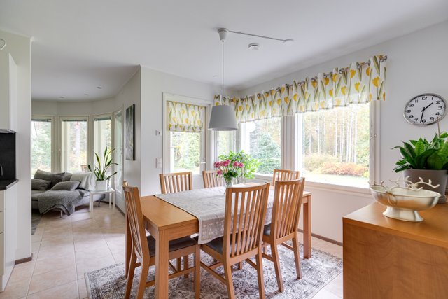 Talon sisätilat ovat avarat ja valoisat. Olohuoneessa on varaava takka, joka tuo lämpöä ja tunnelmaa viileinä iltoina. Keittiö on uusittu vuonna 2017 ja se on varustettu nykyaikaisilla laitteilla. Kolme makuuhuonetta sekä askarteluhuone, joka mukautuu tarvittaessa työtilaksi tai makuuhuoneeksi tarjoavat tilaa perheen jokaiselle jäsenelle, ja kaksi wc-tilaa lisäävät arjen sujuvuutta