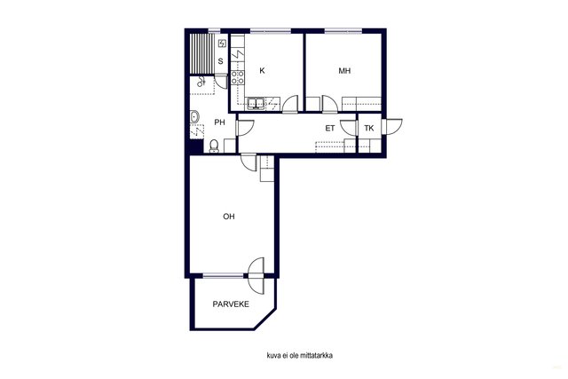- Ei tarkistusmitattu. Pinta-alat saattavat tämän ikäisissä kohteissa (yhtiö rekisteröity ennen 01.01.1992) poiketa olennaisestikin asuinrakennusten nykyisten mittaustapojen ja standardien (SFS 5139) mukaan laskettavasta asuintilojen pinta-alasta. Pinta-ala voi siis olla edellä mainittua pienempi tai suurempi.