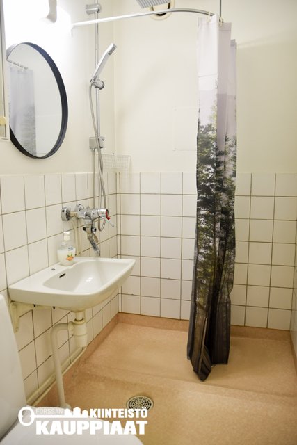 - Pesuhuoneessa muovimatto ja osin laatoitettu seinä.