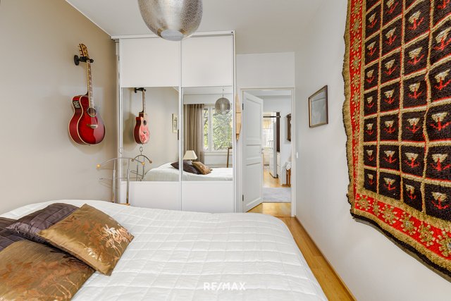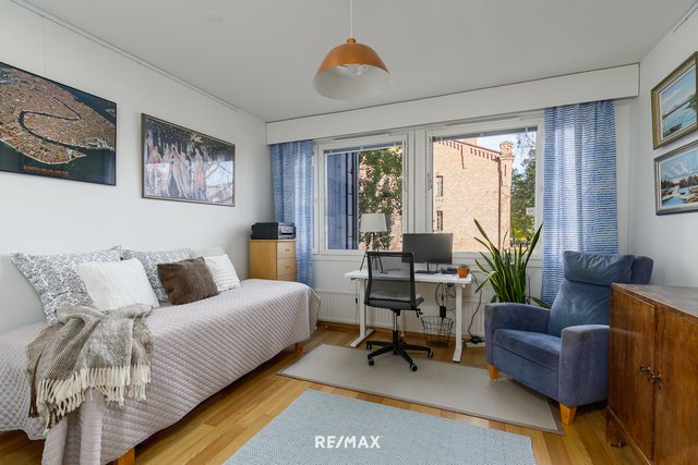 Huoneiston sydämessä on tilava olohuone, joka yhdessä keittiön kanssa muodostaa viihtyisän ja toimivan kokonaisuuden. Avara asunto ja lasitettu parveke luovat viihtyisän ilmapiirin, jossa on helppo rentoutua. Parvekkeelta avautuu näkymä sekä Vuorikadulle Suomen kasarmien suuntaan että rauhalliselle sisäpihalle, mikä tekee siitä ihanteellisen paikan nauttia ilta-auringosta.