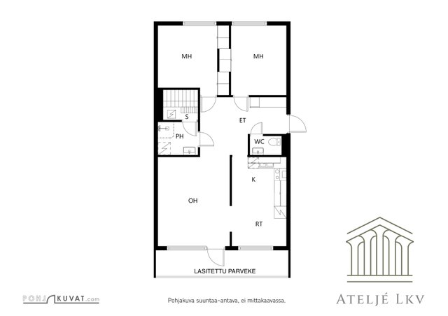 - Isännöitsijäntodistuksen mukainen, Yhtiöjärjestyksen mukainen, (Pinta-ala ei ole tarkistusmitattu ja todellinen pinta-ala voi olla suurempi tai pienempi, kuin ilmoitettu)