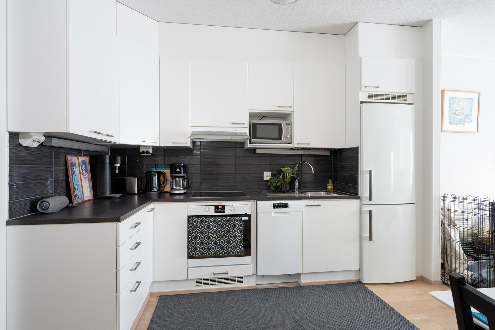 - Astianpesukone, jääkaappipakastin, liesituuletin, erillisuuni, ja liesitaso